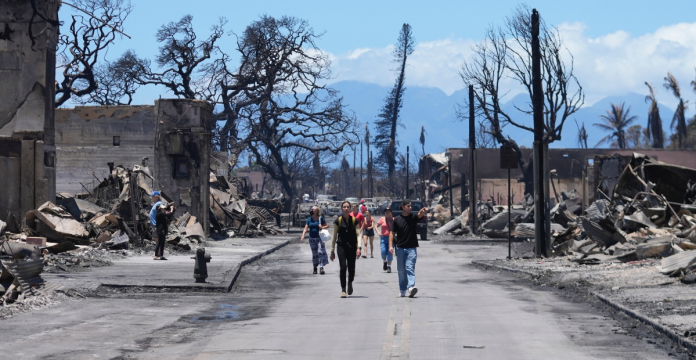 Agentes con perros adiestrados en la localización de restos humanos han recorrido alrededor del 32% de la zona, dijo el condado de Maui en un comunicado dado a conocer el martes. El gobernador pidió paciencia luego de que las autoridades se vieron abrumadas por las solicitudes para visitar la zona afectada.