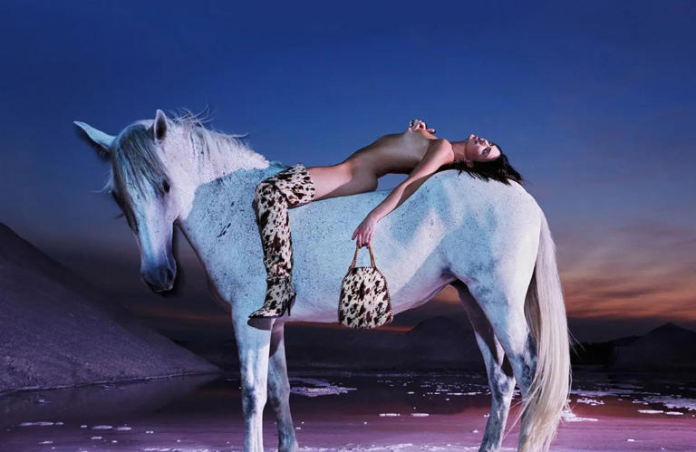 La modelo Kendall Jenner posó sin ropa a caballo para una campaña de Stella McCartney.