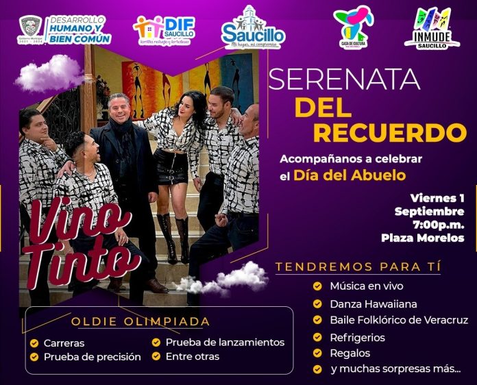 La Alcaldesa Aidé López De Anda se complace en extender una cálida invitación a todos los saucillenses a un evento especial en honor al Día del Abuelo. Bajo el título “Serenata del Recuerdo”, esta velada tendrá lugar el viernes 1 de septiembre a las 7:00 pm en la explanada de la Presidencia Municipal.