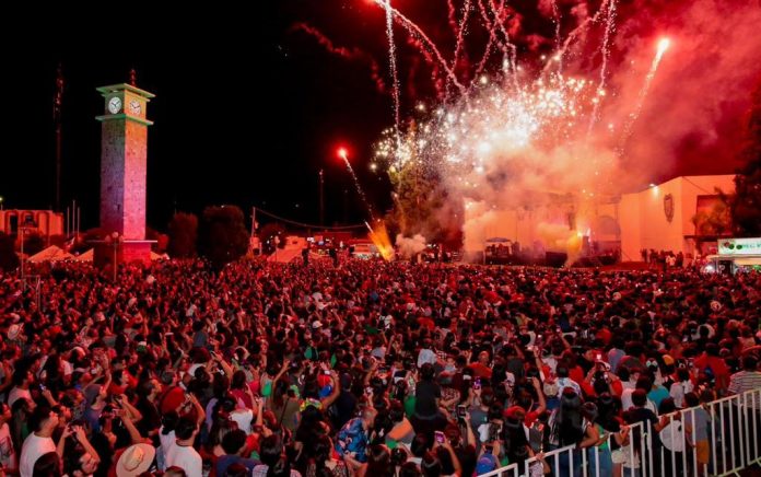 La noche de este viernes, la glorieta del Reloj Público se llenó de familias ante la conmemoración del 213 aniversario de la Independencia de México, evento que inició en punto de las 10 de la noche para que todos pudieran disfrutar de la pirotecnia musical, informó el Alcalde Jesús Valenciano.