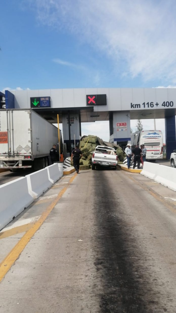 Accidente en caseta de peaje de Saucillo deja cuatro personas lesionadas
