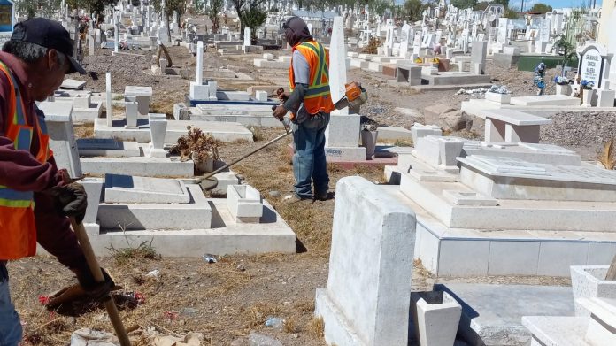 “La encomienda de la alcaldesa ha sido mantener limpios estos espacios, por lo que afinamos los trabajos de limpieza en el Panteón Municipal y el de los Jáquez ya está listo, estamos listos para la Feria del Hueso, los invitamos para que disfruten de estos días de visita a los fieles difuntos”, informó Noé Legarreta, director de Servicios Públicos Municipales.