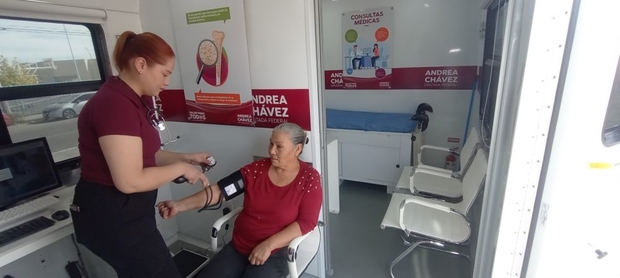 En la unidad móvil de servicios médicos que se encuentra en Delicias, se cuenta con personal calificado para dar el servicio gratuito a todos los habitantes de esta ciudad que se acerquen a este camión, ubicado frente a los campos de futbol del químico de la Rosa.