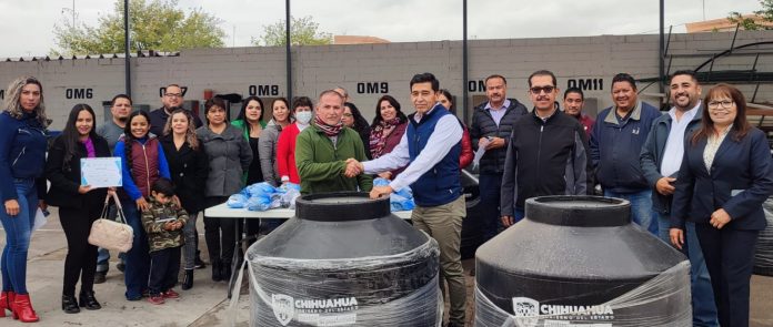 La Junta Central de Agua y Saneamiento (JCAS), entregó 18 tinacos a directivos de escuelas de preescolar, primaria y preparatoria, en el marco del programa Agua para todos.