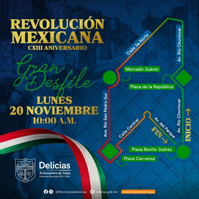 Se trata del recorrido de comparsas de escuelas, instituciones, asociaciones, clubes y grupos militares que iniciará en la plaza Benito Juárez, este lunes 20 de noviembre en punto de las 10 de la mañana, explicó la jefa de Eventos y Logística.