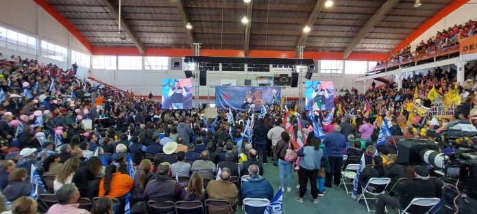 Tal y como lo pronosticaron los organizadores, tendrían una afluencia de 3 mil simpatizantes, la cifra se ha rebasado, el gimnasio municipal sede de este importante evento, se encuentra totalmente lleno, en el exterior se instalaron sillas y pantallas para quienes no pudieron entrar, pese al clima, la gente sigue esperando.