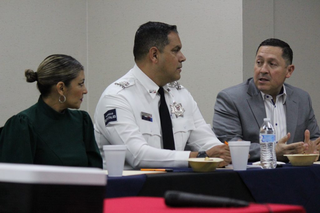 A su vez la presidenta del Colegio de Notarios, Saray Martínez Montes, expuso las inquietudes de su gremio, en materia de seguridad, así como la intención de establecer un puente directo para la colaboración en beneficio de los juarenses.
