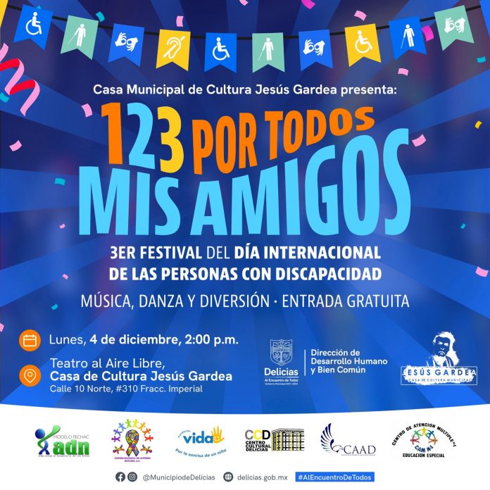 Con la finalidad de diversificar las actividades que fomenten la convivencia de la familia deliciense, interés del Alcalde Jesús Valenciano, y en el marco del Día Internacional de la Discapacidad, se llevará a cabo un evento conmemorativo a la fecha.