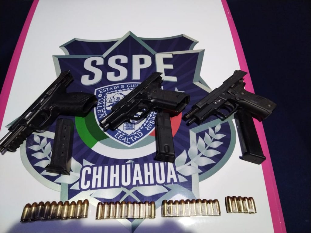 Sin embargo, los agentes de la SSPE detuvieron a través de maniobras tácticas a Aberl David J. E. de 37 años y Raquel Lucero G. T. de 32 años, presuntos responsables del hecho, a quienes además se les aseguró una camioneta Jeep Comander de color blanca, 03 armas de fuego y 35 cartuchos útiles.