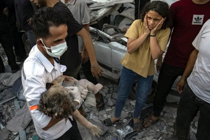 Bajo el asedio total de Israel desde el 9 de octubre, el territorio palestino se enfrenta a una profunda crisis humanitaria: la mayoría de sus hospitales están fuera de servicio y el 85 por ciento de su población, es decir, 1.9 millones de personas, ha huido de la destrucción en el norte del enclave para refugiarse en el sur.