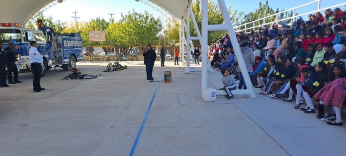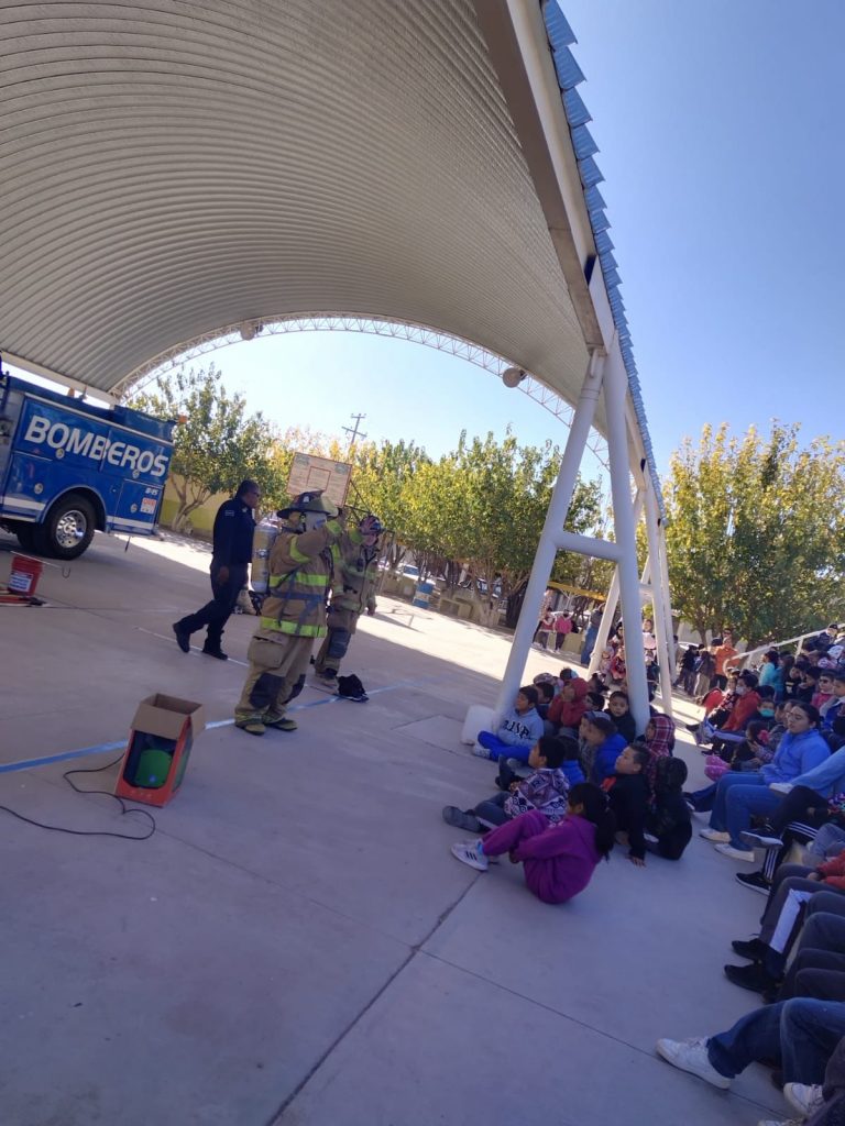 “La alcaldesa Miriam Soto siempre nos ha encomendado estar cercanos con la ciudadanía y que mejor que brindar esta información a los niños”, compartió Eduardo Guillen, coordinador de Protección Civil y Bomberos de Meoqui, quien comentó que esto lo realizan debido a que generalmente la población desconoce la labor de los elementos del departamento.