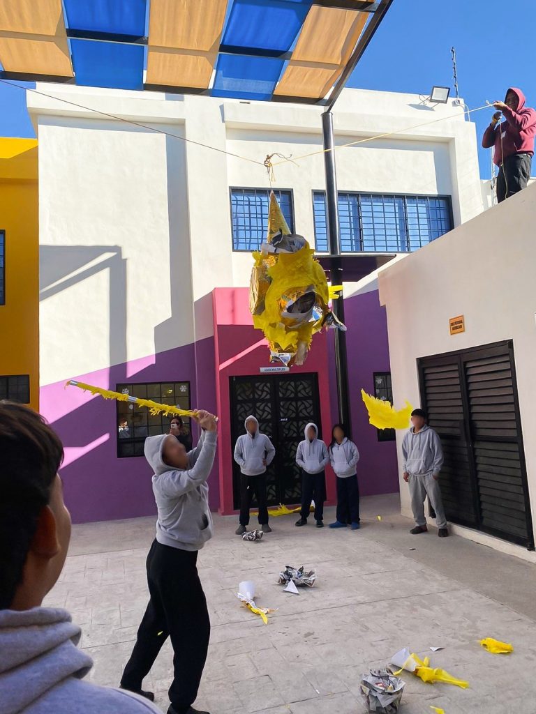 Menores de edad en situación de movilidad, que se alojan en el Centro Integral de Atención a Niñas, Niños y Adolescentes Migrantes no Acompañados “Nohemí Álvarez Quillay” y de la Casa del Menor Migrante, ambas ubicadas en Ciudad Juárez, disfrutaron de una tarde de diversión en el marco de las festividades decembrinas.