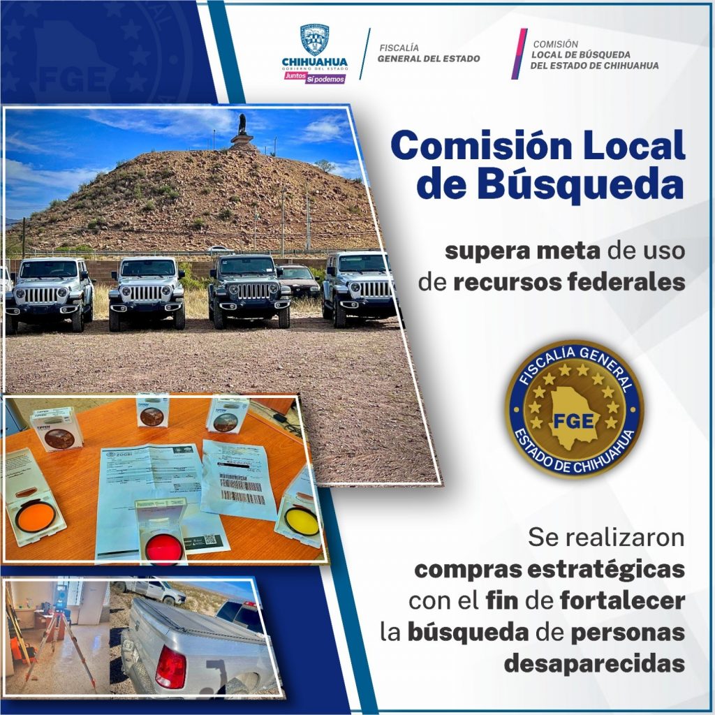 Al inicio de año, la Comisión Local de Búsqueda de la Fiscalía Especializada en Investigación de Violaciones de Derechos Humanos y Desaparición Forzada, dio a conocer que en el 2023 se superó la meta de aplicación de los recursos federales que se asignaron al estado de Chihuahua.