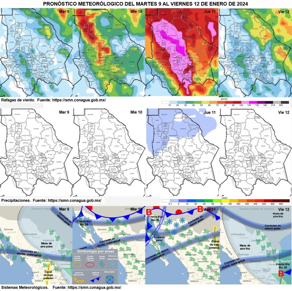 Para el jueves las rachas pueden superar los 85 kilómetros por hora (km/h) en las regiones noroeste, oeste, suroeste, centro y sureste, con posibilidad de tolvaneras en los tramos Chihuahua-Juárez, Juárez-Ascensión, Janos-Buenaventura, Chihuahua-La Junta, Jiménez-Parral, así como en Carichí, Balleza, Nonoava, San Francisco de Borja, Rosales y Satevó.