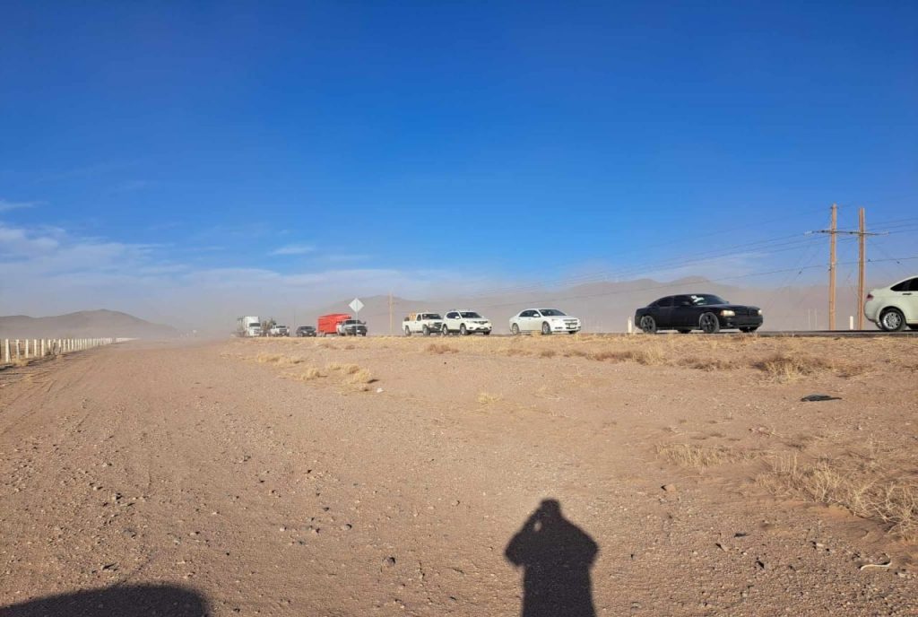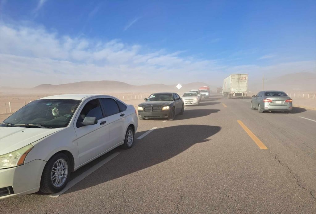 Al viajar por carretera, en caso de presentarse una una tolvanera, es preciso bajar la velocidad, encender faros y luces intermitentes, de ser posible orillarse y seguir en todo momento las indicaciones de las autoridades.Es importante ante la presencia de polvo y arena en el ambiente, al salir de casa se debe cubrir boca y nariz, y de ser posible también proteger los ojos con algún tipo de lentes. En caso de alguna emergencia llamar de inmediato a la línea 9-1-1.