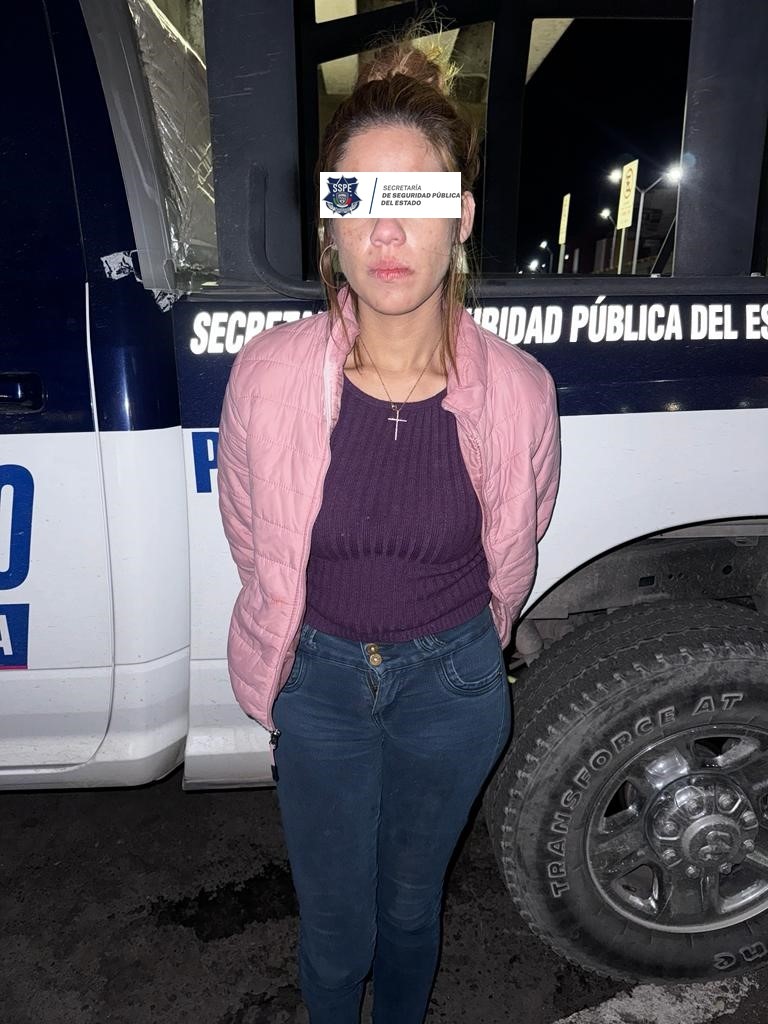 Agentes de la Secretaría de Seguridad Pública del Estado detuvieron en flagrancia a una mujer y un hombre, identificados como Ana Rosa A. G. de 26 años y Álvaro Valente M. E. de 42 años, por circular en un vehículo que presentaba reporte de robo con fecha del pasado 29 de diciembre del 2023.