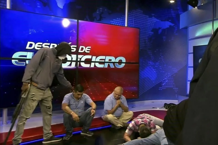 Miles de ecuatorianos presenciaron en vivo el asalto a TC televisión la tarde del martes, cuando un grupo de encapuchados con armas largas, cortas y explosivos irrumpió en el noticiero del mediodía. Los asaltantes iban y venían profiriendo amenazas, golpeando a unos y apuntando a presentadores, camarógrafos, técnicos y trabajadores de ese medio.