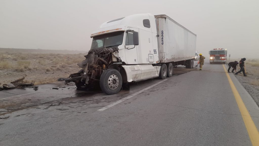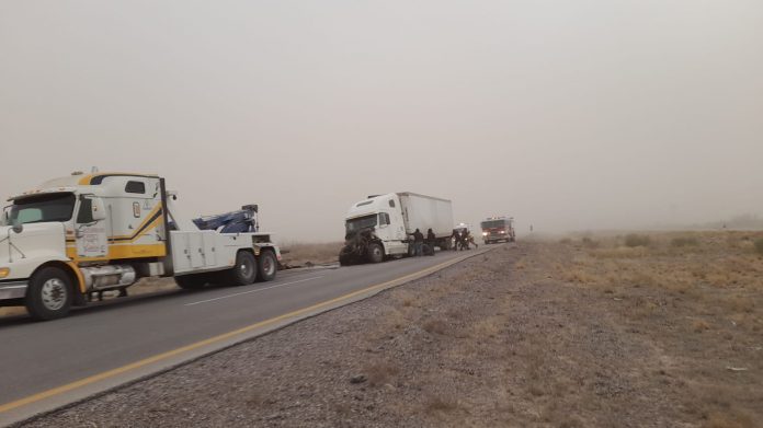 Ante la baja visibilidad por tolvaneras, autoridades cerraron la circulación hacia la carretera a Ciudad Juárez-Janos, tramo San Teresa-Ascensión, cierre en el kilómetro (km) 112+200 y en el Km. 169+500.