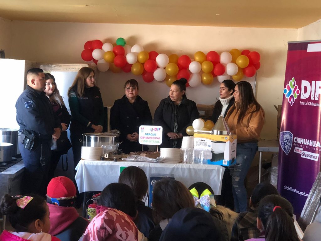 El DIF Estatal hizo entrega de equipamiento y artículos de cocina para el comedor escolar de la primaria Club de Leones, ubicada en la comunidad de La Regina, en el municipio de Julimes, con una inversión de 94 mil 199.99 pesos