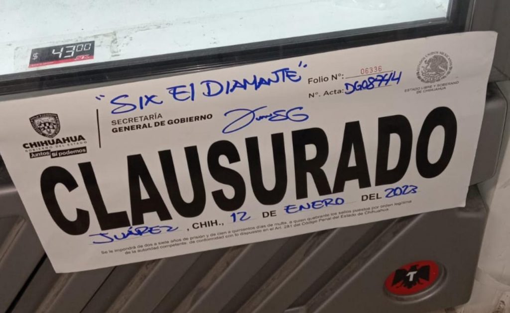 •     Six el Diamante por violación de giro (Ciudad Juárez).