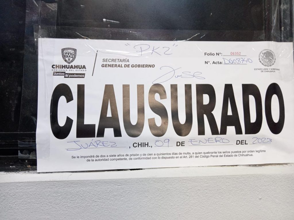 •     Restaurante Bar “Perla Negra Mariscos Chela” por permiso provisional vencido (Ciudad Juárez).