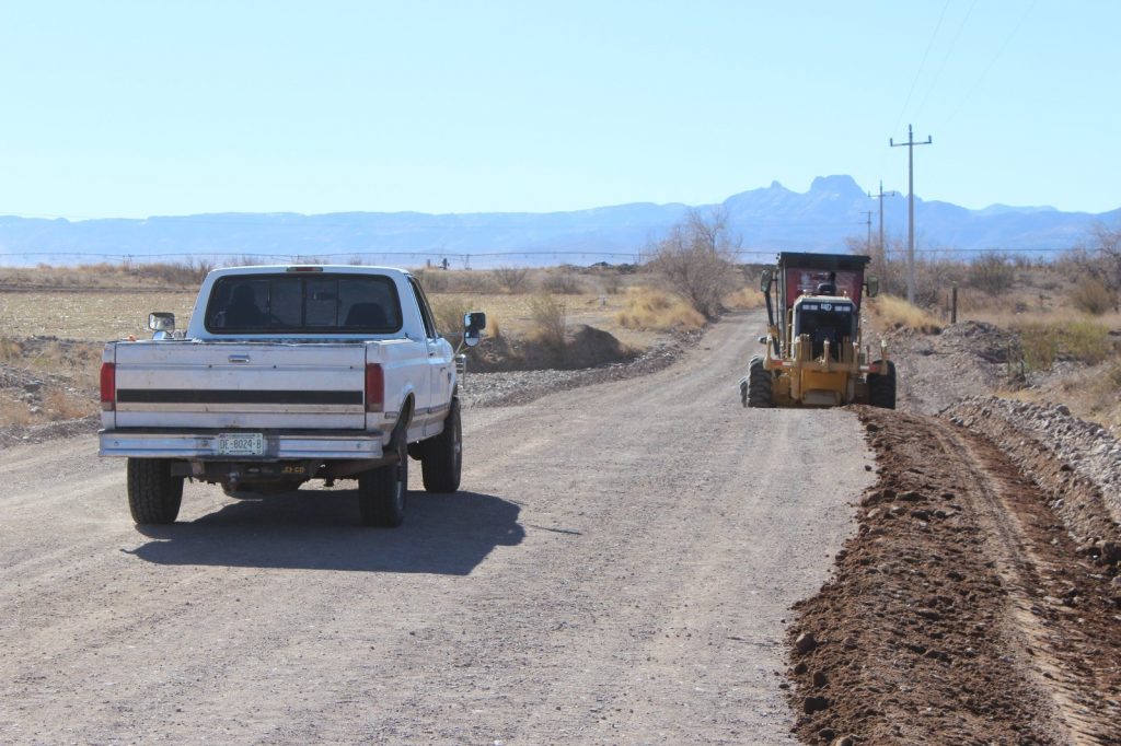 La Secretaría de Desarrollo Rural (SDR) inició los trabajos de mejoramiento de caminos rurales en el municipio de Janos, donde se trabaja de la mano con autoridades locales y productores agrícolas de la región, para renovar las condiciones de estas vías de comunicación.