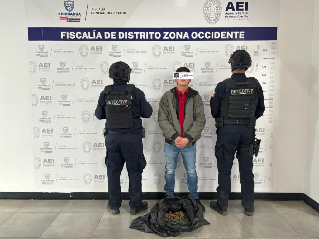 Al ahora detenido, se le localizó una bolsa con 1.1 kilogramos de una sustancia con las características de la Marihuana, por lo que fue asegurada para su posterior puesta a disposición de las autoridades correspondientes.