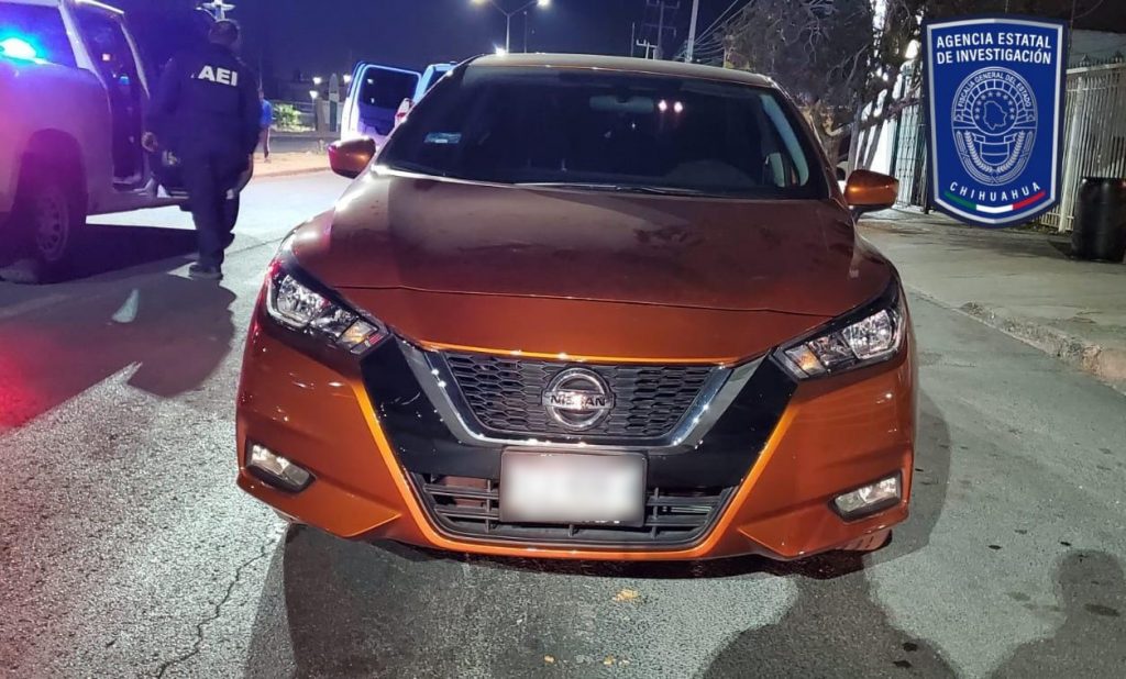 En la habitación objetivo del cateo, el cual se realizó con permiso de un morador, se aseguró un vehículo Nissan, línea Versa, modelo 2022, de color naranja, con matrícula del estado de Chihuahua.