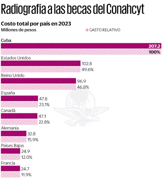 Cuba ya es el país que recibe la mayor cantidad de estudiantes mexicanos y al que Conahcyt transfiere el mayor volumen de recursos. En Canadá invertimos solo el 22.8% de lo que nos cobra Cuba.