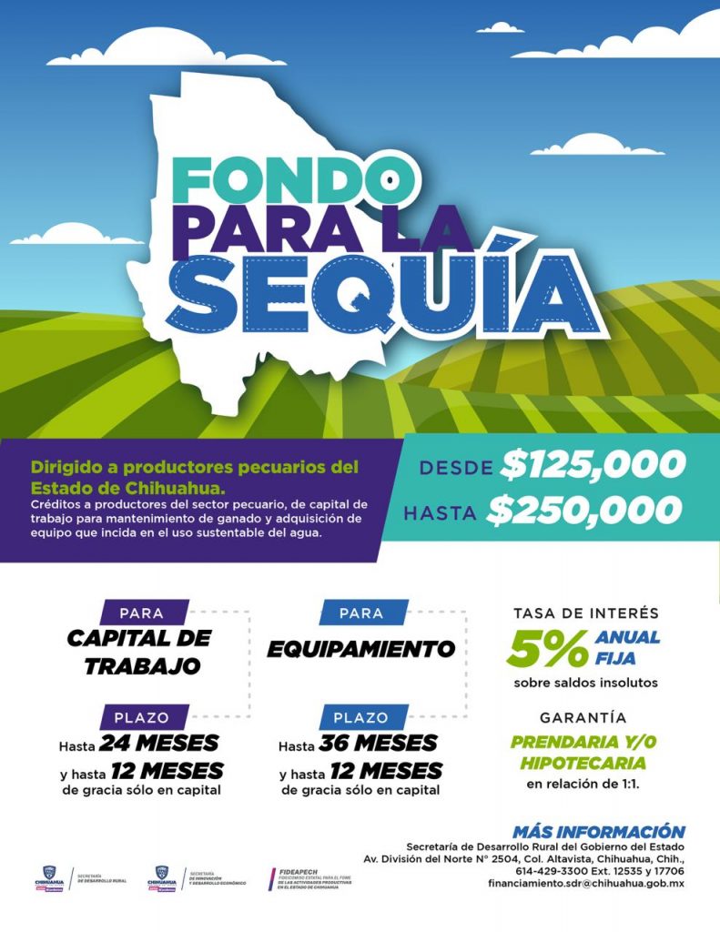En conjunto con la Secretaría de Innovación y Desarrollo Económico (SIDE), se firmó un convenio por 30 millones de pesos con el Fideicomiso para el Fomento de las Actividades Productivas en el Estado de Chihuahua (Fideapech), para el otorgamiento de créditos emergentes a los agricultores.