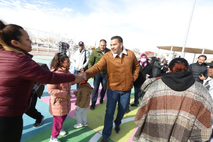 El Presidente Municipal, Cruz Pérez Cuéllar, visitó el suroriente de la ciudad para llevar a cabo la entrega de las obras de rehabilitación de los parques comunitarios Tutuaca y Desierto de Gobi, los que benefician directamente a más de 16 mil 400 juarenses.