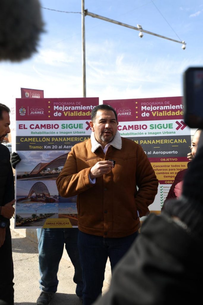 Ahí, el Alcalde destacó que se trata de una gran obra para la comunidad, pues mejorará en gran medida el principal acceso a Ciudad Juárez, brindando a los juarenses y a los visitantes una imagen más noble en la entrada de esta frontera.
