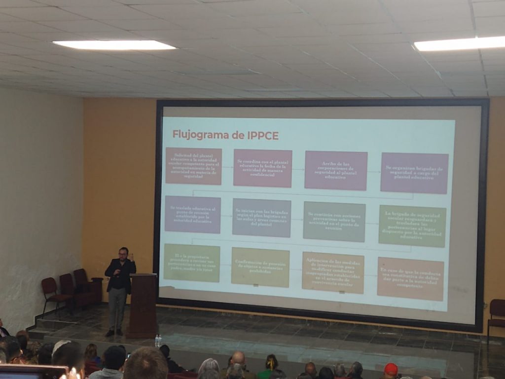 Derivado de los acuerdos de la Mesa Estatal de Seguridad Escolar y Prevención de la Violencia, se impartió un taller sobre el protocolo “Intervención para la Prevención y Protección de la Comunidad Escolar”, dirigido a personal de secundarias y de educación media superior de la región centro-sur.