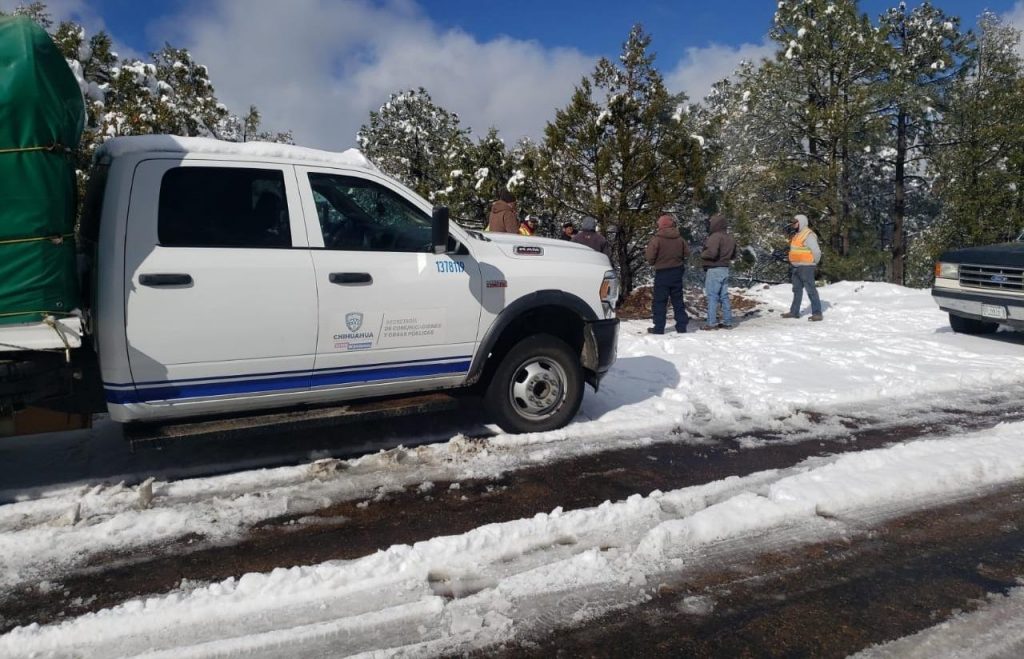 Derivado de los trabajos realizados por autoridades municipales y estatales, se hizo la remoción de nieve y hielo del pavimento de las carreteras Madera – Largo Maderal, Madera – Puerto de los Lobos y Namiquipa – Gómez Farías (Cuesta del Toro).