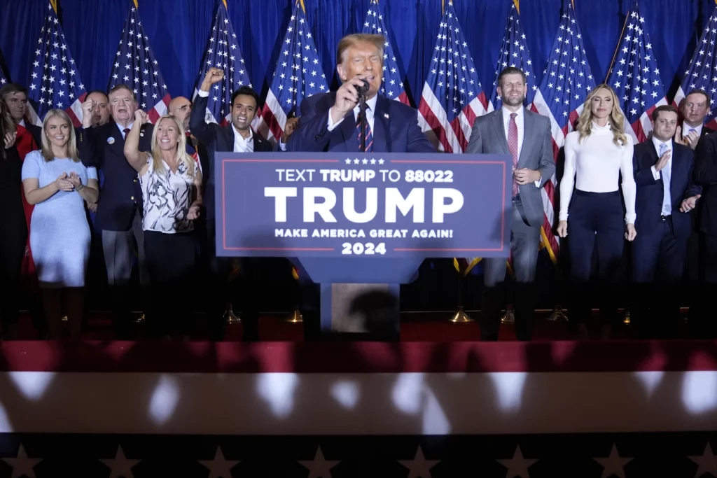 Trump afianzó su mensaje de extrema derecha, sin ningún indicio de acercarse a los votantes más moderados que apoyaban a Haley, algunos de ellos preocupados por las 91 acusaciones penales que enfrentaba el magnate republicano.
