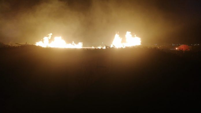Fue aproximadamente a las 7 de la noche cuando se reportó al sistema de emergencias 911, de un fuerte incendio en las cosedoras de Chile Chipotle para mejor referencia en los Tres 7.