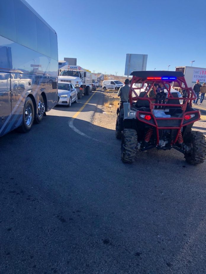 Más de un centenar de transportistas pertenecientes a la Confederación Nacional de Transportistas de México (Conatram), decidieron cerrar la carretera federal 45 en el tramo de Chihuahua a Delicias y de Delicias a Chihuahua en el kilómetro 202.