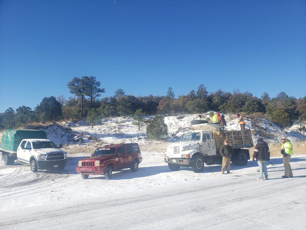 Autoridades municipales de Protección Civil, reportaron la presencia de nieve en Madera, y llovizna en Namiquipa, Gómez Farías, Ignacio Zaragoza Buenaventura.