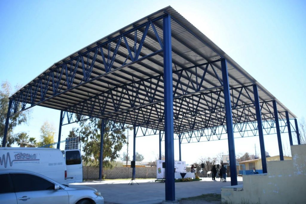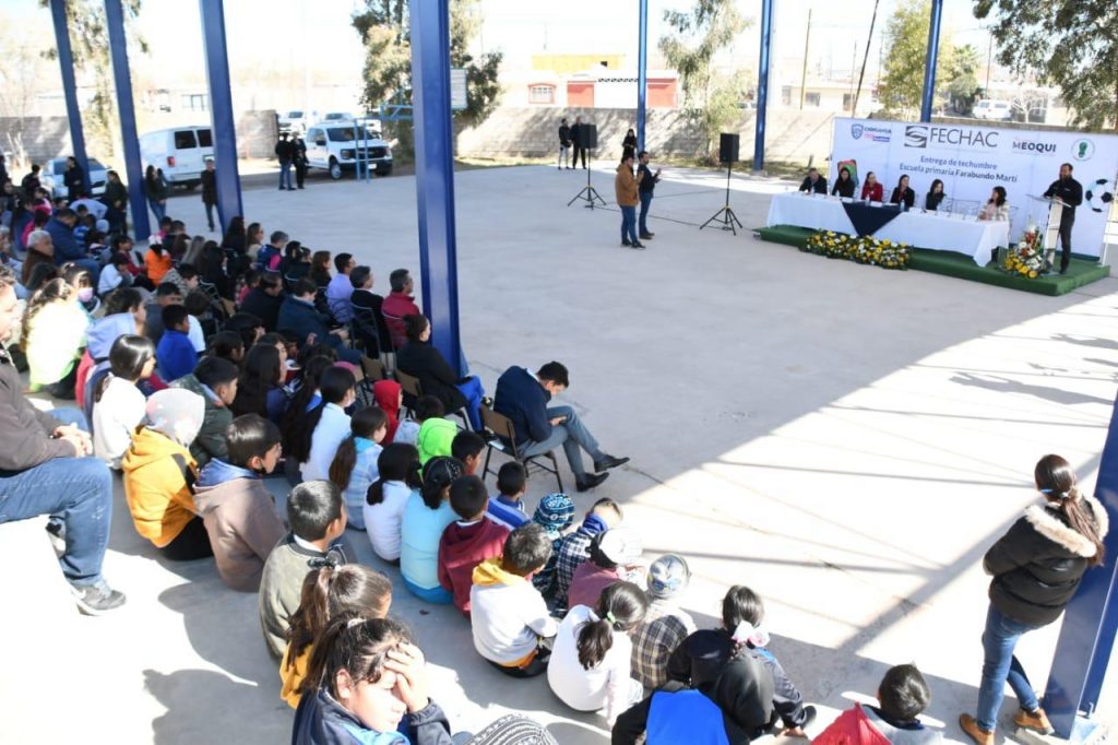Con una inversión cercana a los dos millones de pesos, se realizó la construcción e instalación de una techumbre en la Escuela Primaria Federal “Agustín Farabundo Martí”, ubicada en el municipio de Meoqui, la cual beneficiará de manera directa a 207 estudiantes que son atendidos en este plantel escolar.