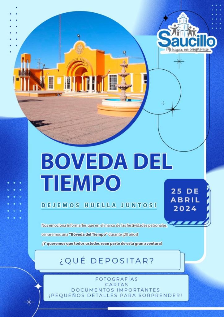 Con el propósito de fomentar la participación de la comunidad, la alcaldesa ha extendido la invitación a instituciones educativas, clubes de servicio y diversas agrupaciones de Saucillo. La bóveda del tiempo se convertirá en un testigo tangible de la vida cotidiana, la cultura y los acontecimientos que definan la identidad del municipio en el presente.
