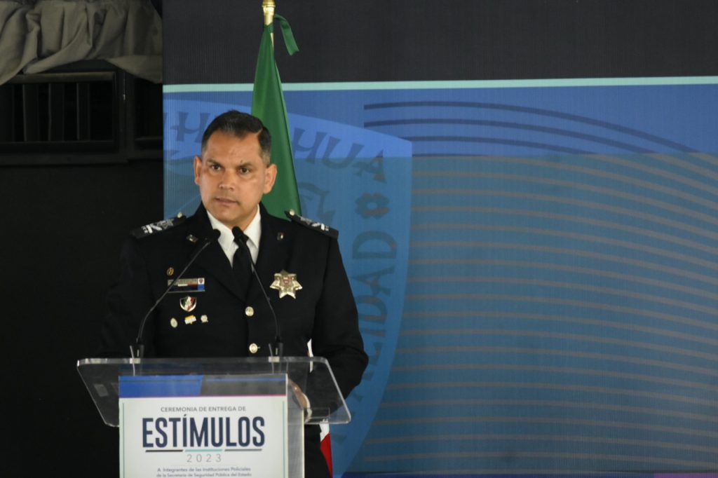 Durante la Entrega de Estímulos 2023, el titular de la SSPE dio a conocer los apoyos brindados a los agentes de la corporación durante el 2023