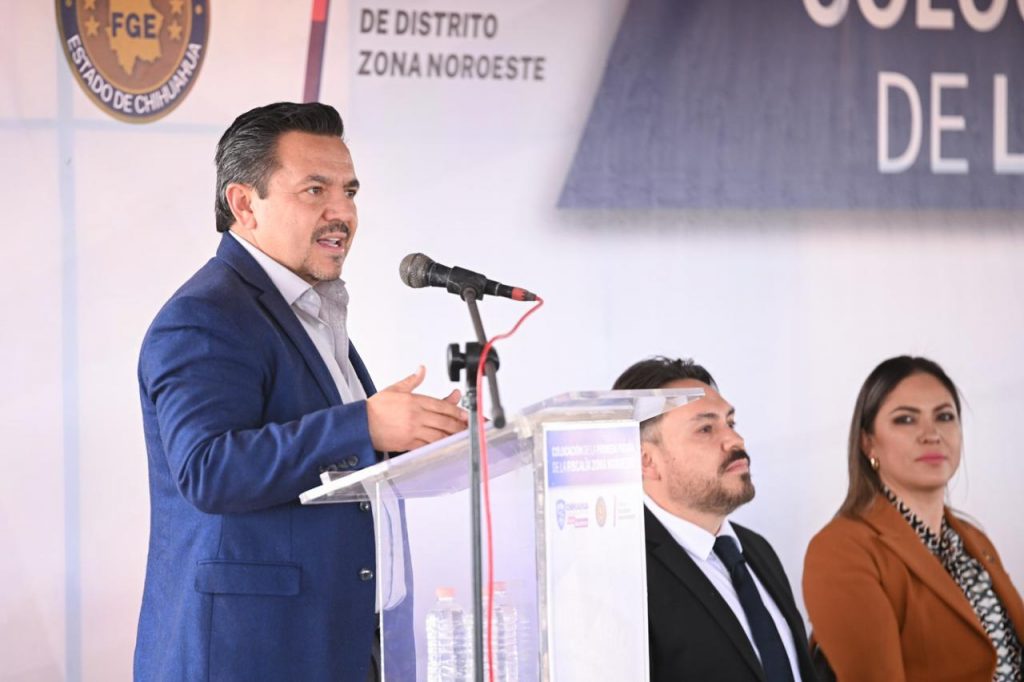 La gobernadora Maru Campos encabezó en Nuevo Casas Grandes, la ceremonia de colocación de la primera piedra del nuevo edificio de la Fiscalía General del Estado Zona Noroeste, que se construye con una inversión total de 71 millones de pesos.