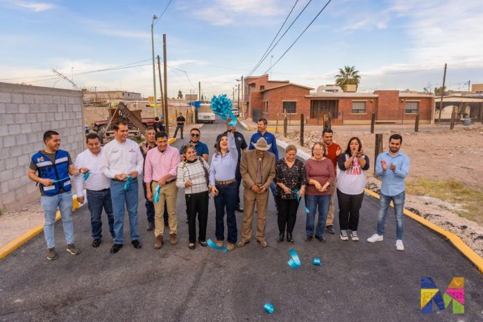 Familias de la Calle Carlos Lineo en Meoqui ya disfrutan su calle pavimentada