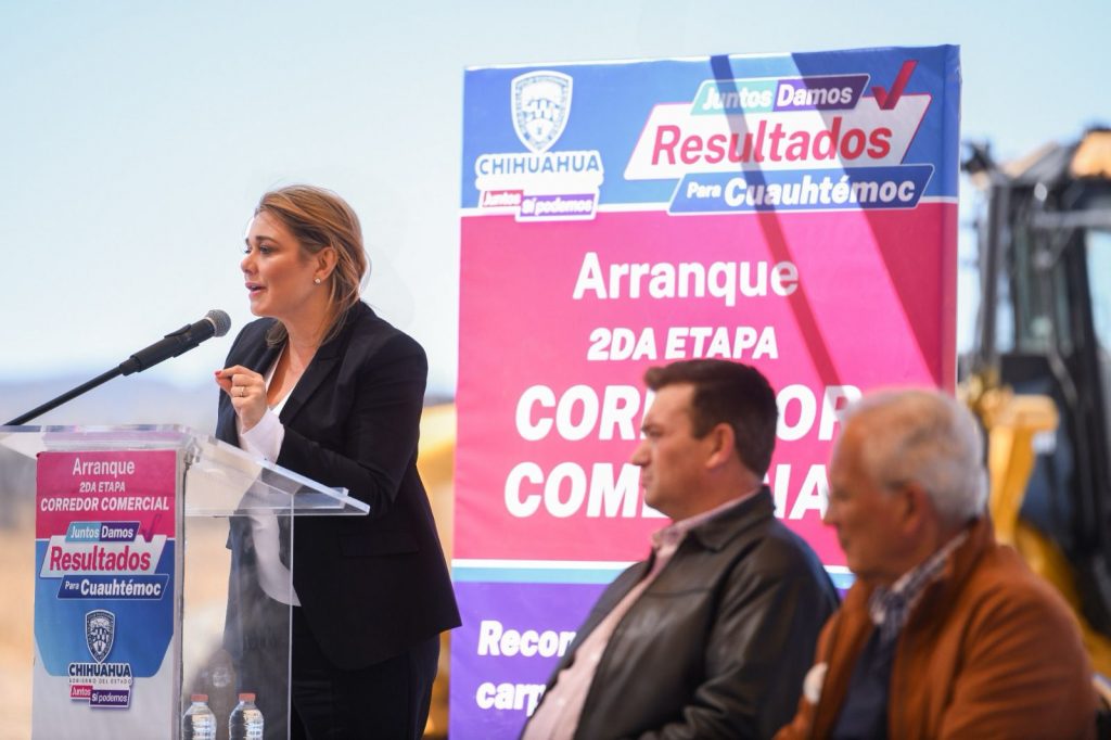 La gobernadora Maru Campos presidió en ciudad Cuauhtémoc, el arranque de los trabajos de rehabilitación de 30 kilómetros de carpeta asfáltica del Corredor Comercial Manitoba, que beneficiarán a los poco más de 25 mil conductores que por ahí transitan diariamente.