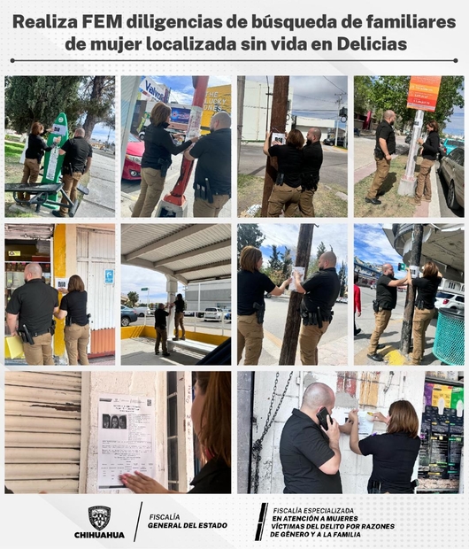 La Fiscalía Especializada en Atención a Mujeres Víctimas del Delito por Razones de Género y a la Familia, lleva a cabo la búsqueda de familiares o personas que puedan identificar a una mujer que fue localizada sin vida el 06 de septiembre del 2015, en un canal de riego, en el municipio de Delicias.