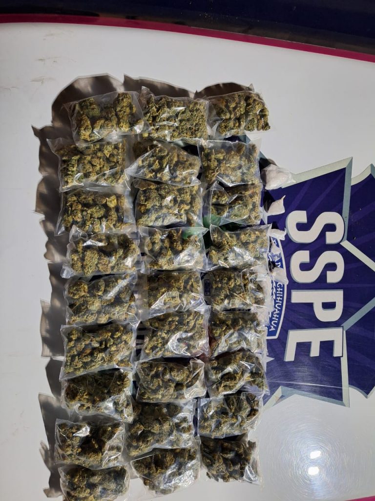 Elementos de la Policía del Estado detuvieron a tres presuntos delincuentes en el municipio de Cuauhtémoc, a quienes se les aseguraron 33 envoltorios con lo que pudieran ser drogas, luego de ser detectados a través del trabajo de videovigilancia y denuncia ciudadana.