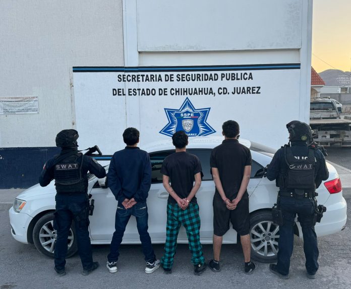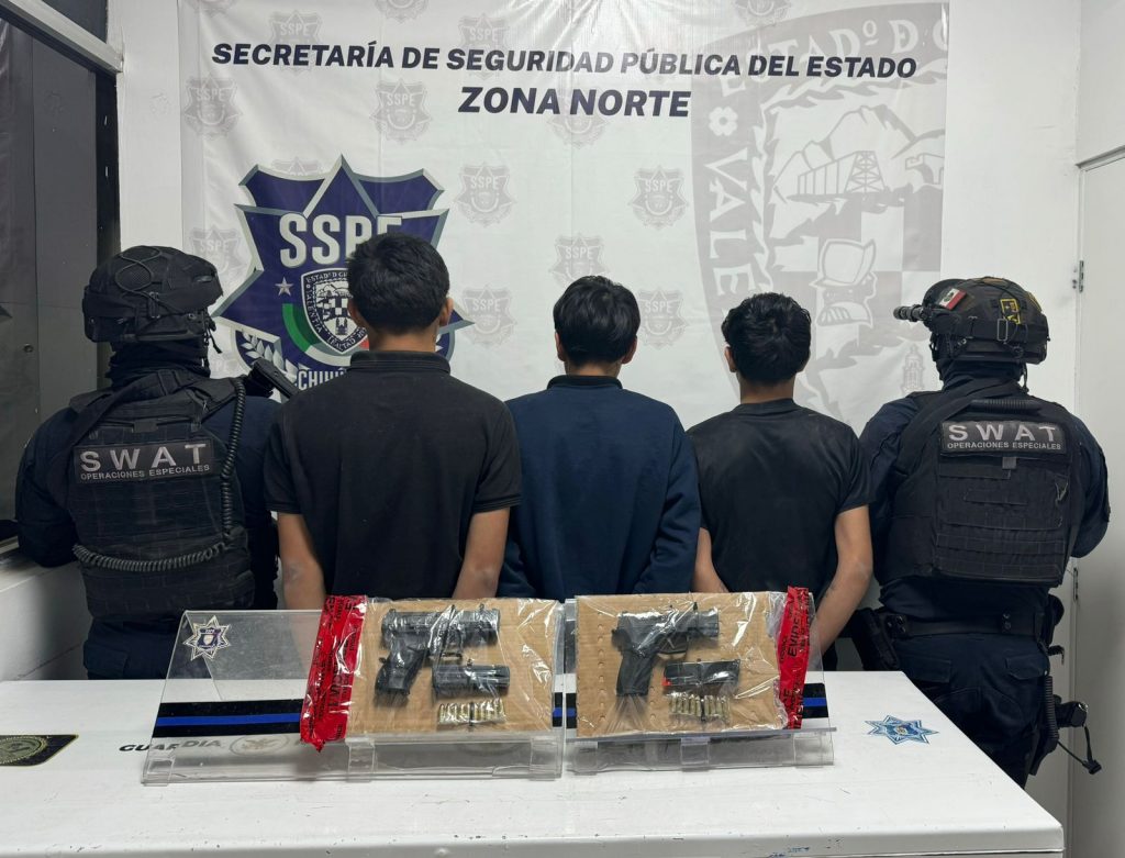 La Fuerza Especial SWAT de la Secretaría de Seguridad Pública del Estado (SSPE), detuvo en Ciudad Juárez a tres menores de edad, identificados con las iniciales C. A. M. L. de 17 años, J. G. C. L. de 17 años, y P. C. L. de 16 años, por el delito de portación de armas de fuego.