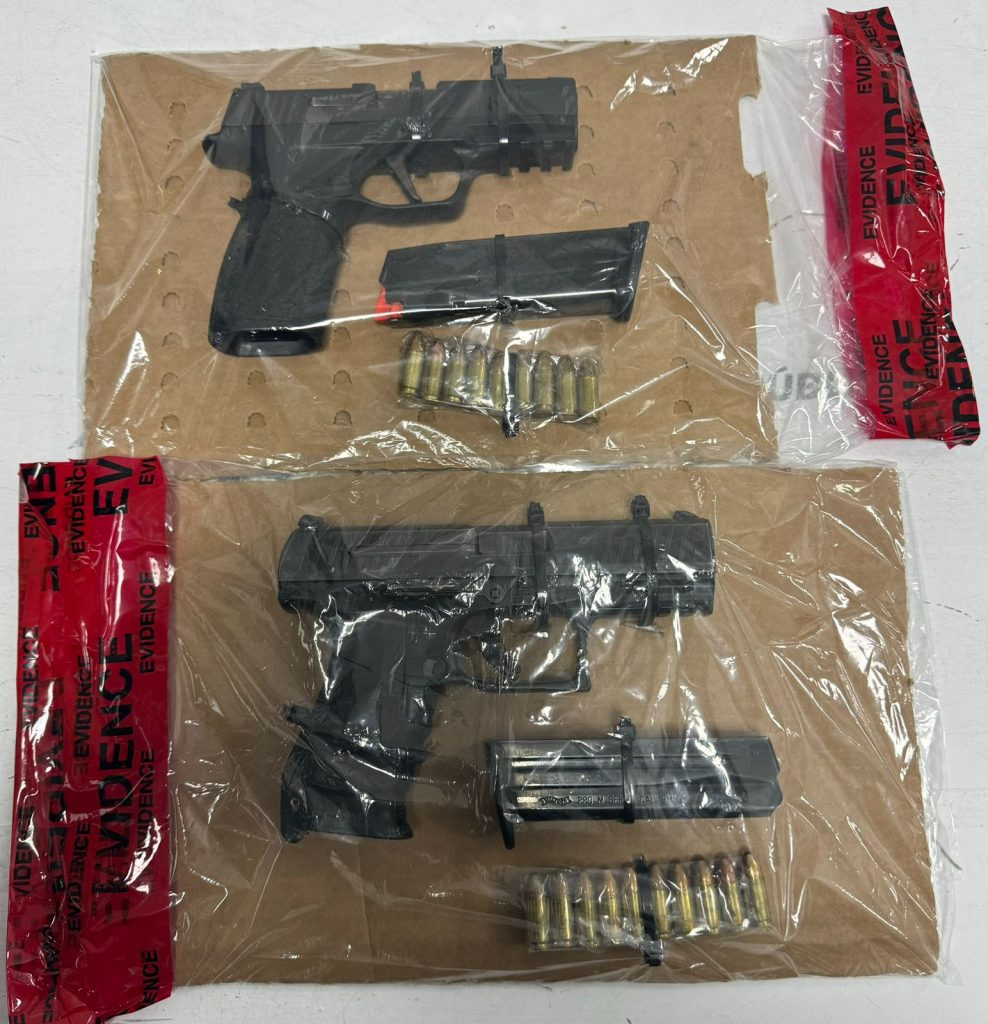 Tras darle alcance al automóvil, los elementos del área de Estado Mayor procedieron a la revisión  de los detenidos, en la que localizaron dos armas de fuego del tipo pistola de calibre .9 mm, ambas con un cargador abastecido con 10 y 9 cartuchos útiles, respectivamente.