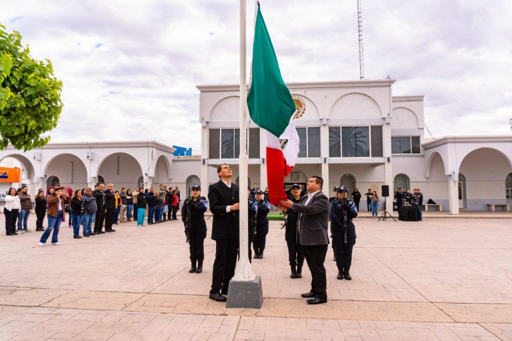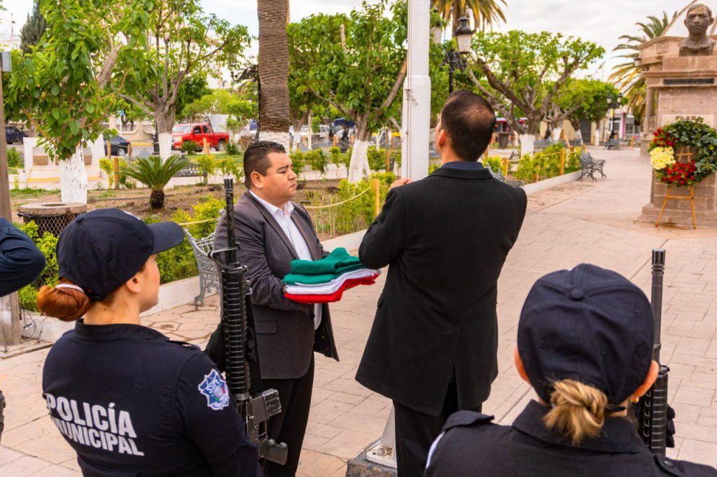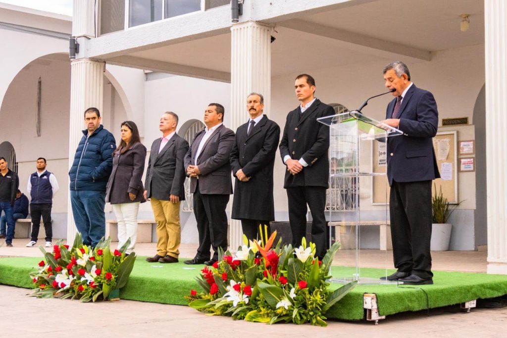 Luego de izar la Bandera y rendir Honores, en presencia de autoridades municipales, estatales y servidores públicos, Jorge Velázquez, Secretario Municipal, quien acudió en representación de la alcaldesa mencionó: