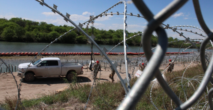 Efectivos de la Guardia Nacional en la localidad de Eagle Pass levantaron este jueves una nueva línea defensiva de vallados y concertina a lo largo del río Bravo a la espera de nuevas entradas de migrantes, que dejan tras de sí las marcas de su periplo para cruzar la frontera desde México hasta Estados Unidos.